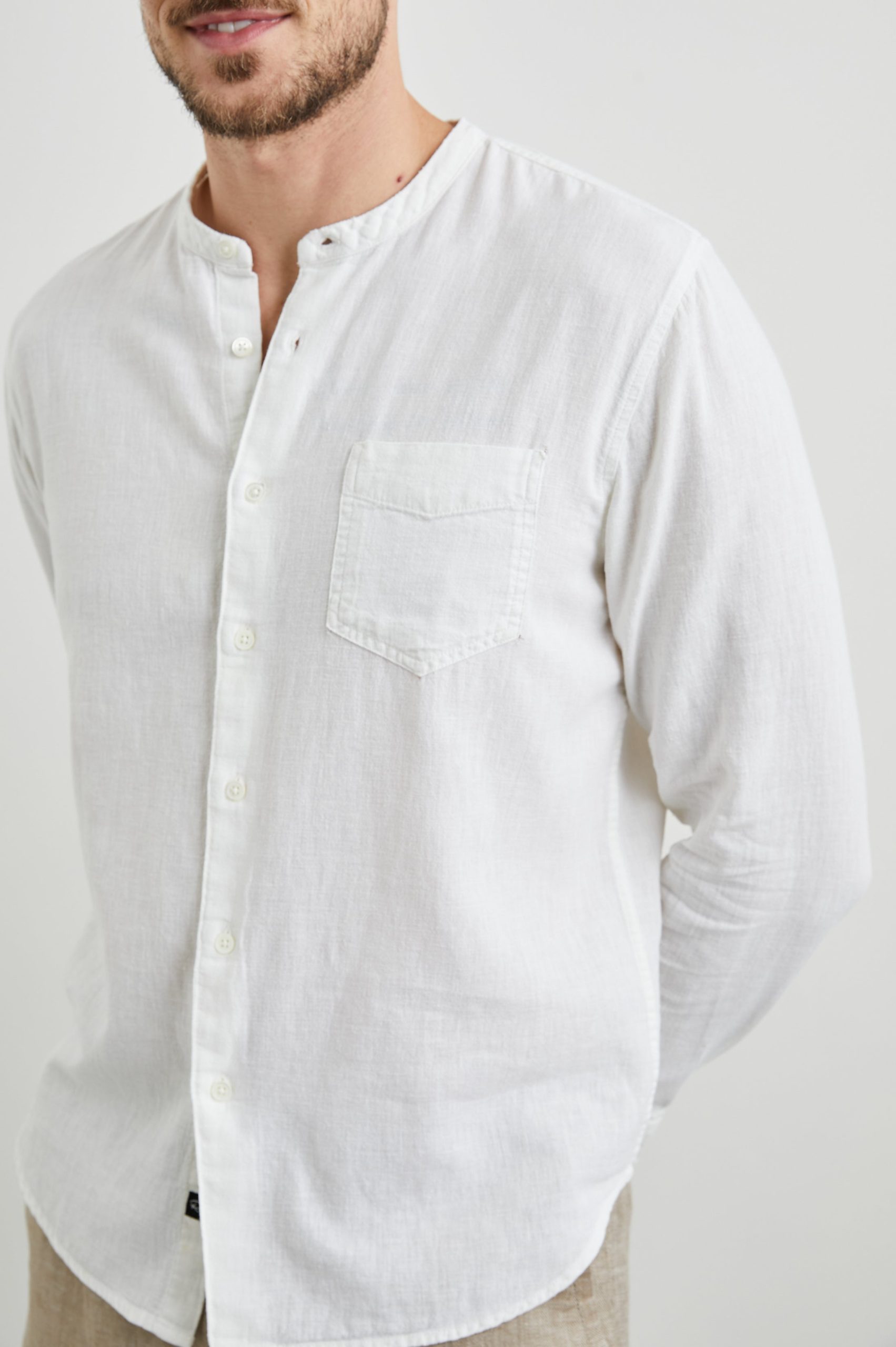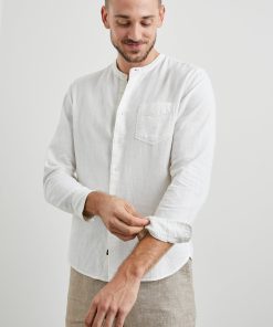 Inspired by French workwear, this collarless shirt is perfect for elevating your button-down collection. The Antoine is crafted from a linen-cotton blend that makes it a warm weather necessity.