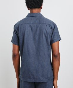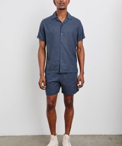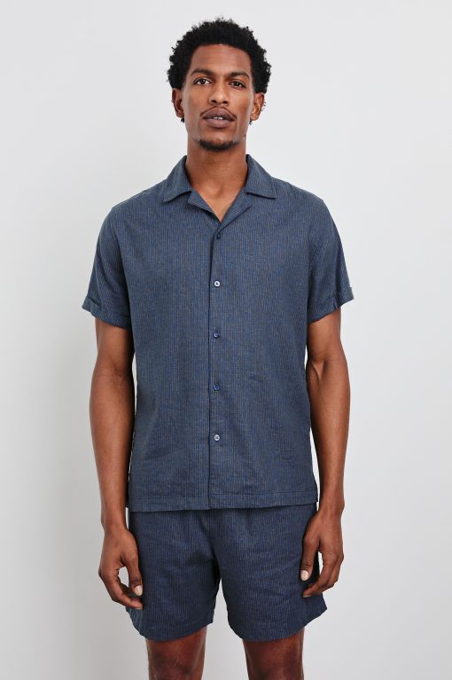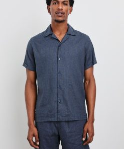 This short-sleeve is designed with comfort and versatility in mind. Crafted from a stretch linen blend with an Art Deco-inspired print and traditional shirting details, the Atlas makes a statement on its own or paired with the Aries Short.