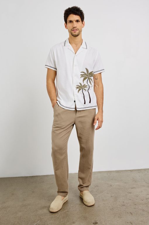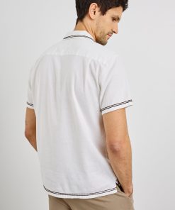 Made for lightweight comfort, the Gibson short-sleeve button-down features a classic fit in a stretch-linen blend. Embroidery at the collar, sleeves, hem, and front adds a distinctive touch.