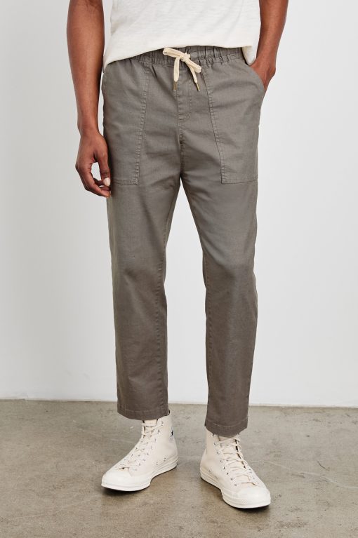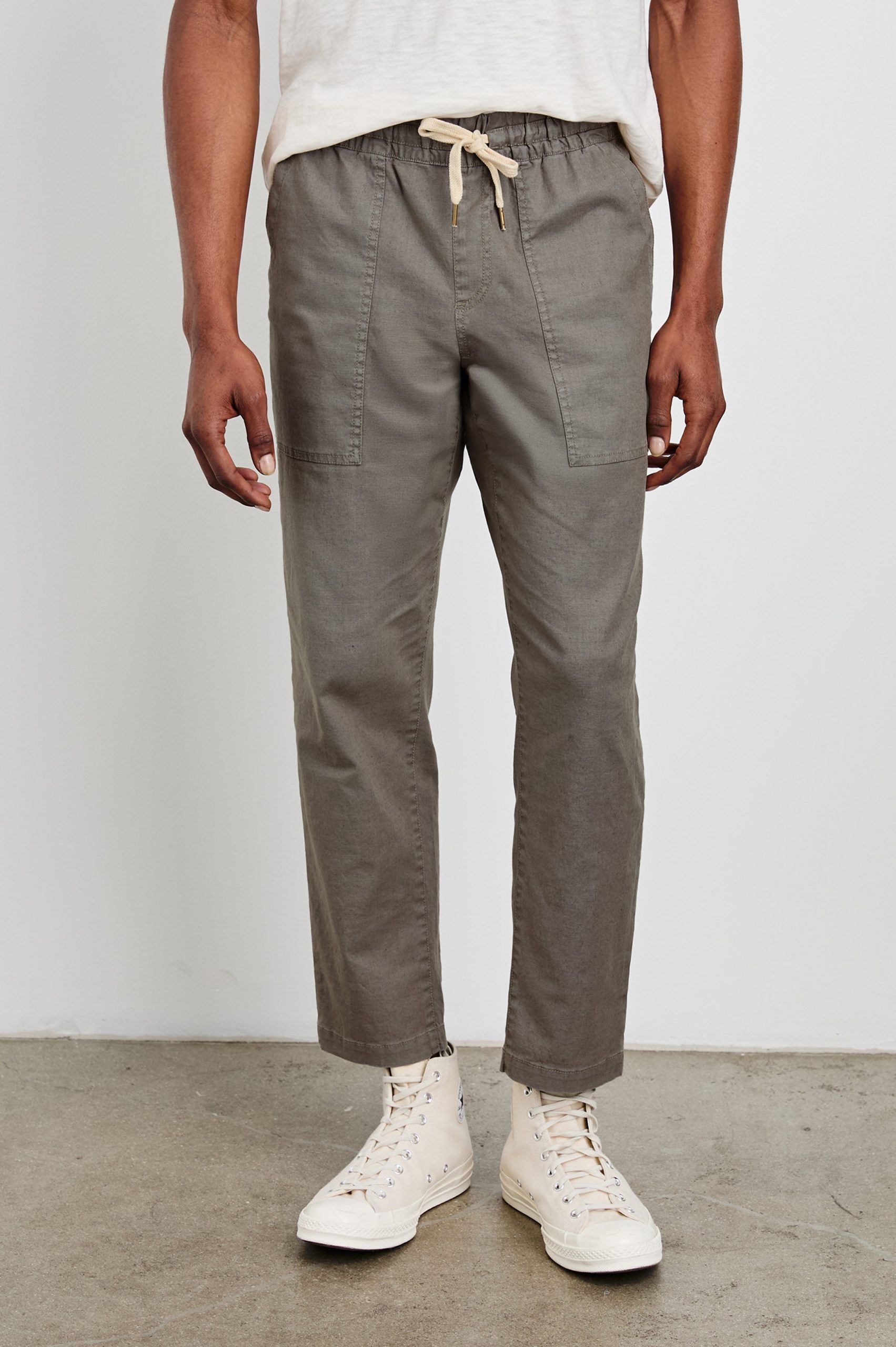 The Gobi reimagines the classic utility pant. A soft stretch linen fabrication and elasticated drawstring waist promises all-day comfort, while the tapered leg, back patch pockets and contract stitching delivers an elevated, streamlined design.