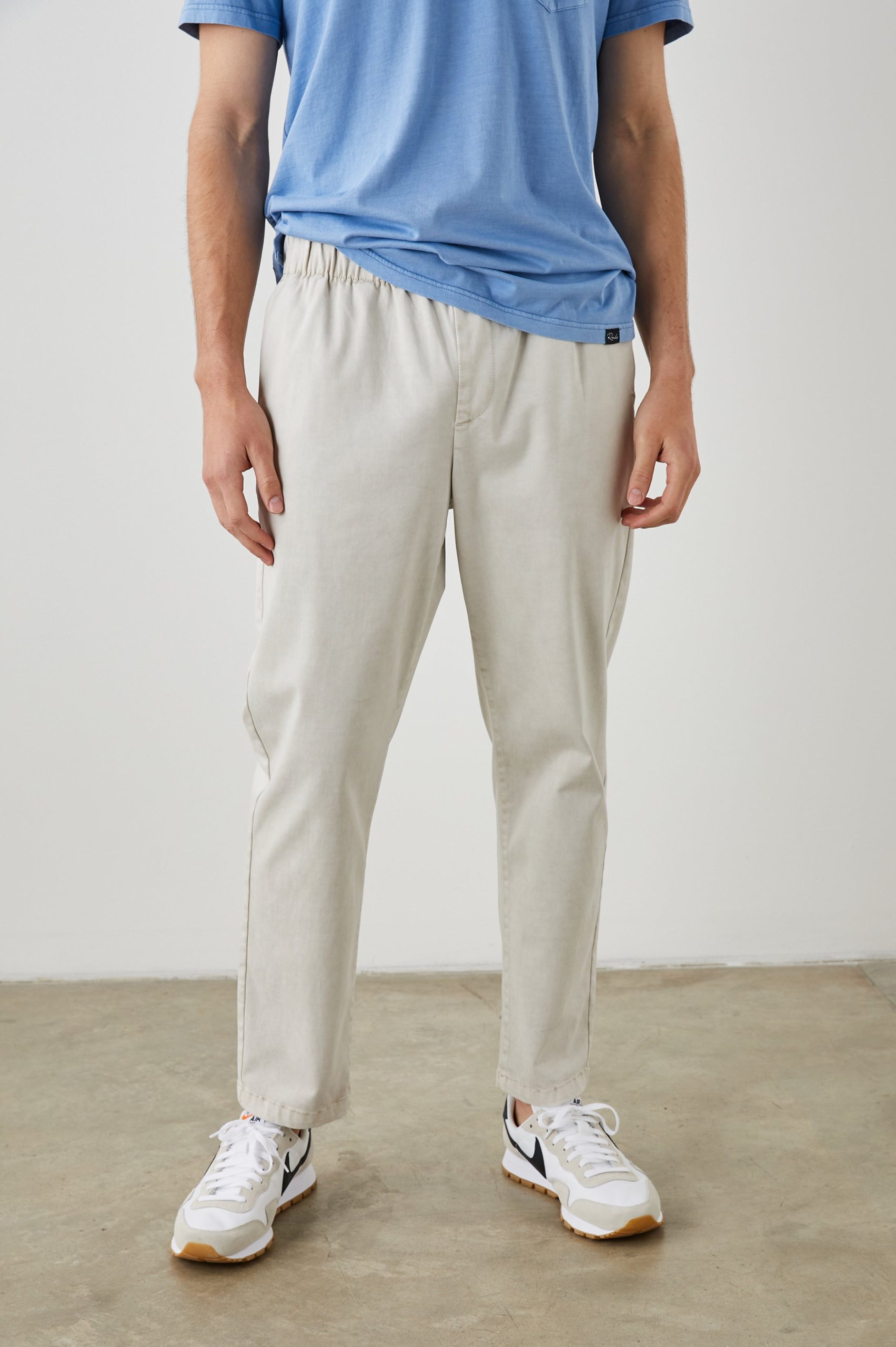 A relaxed take on slim fit, the Julian is complete with an elasticated waist and welt back pockets. Made from a sueded stretch cotton, and garment-dyed for a lived-in look, the Julian pairs perfectly with any shirt or lightweight sweater.