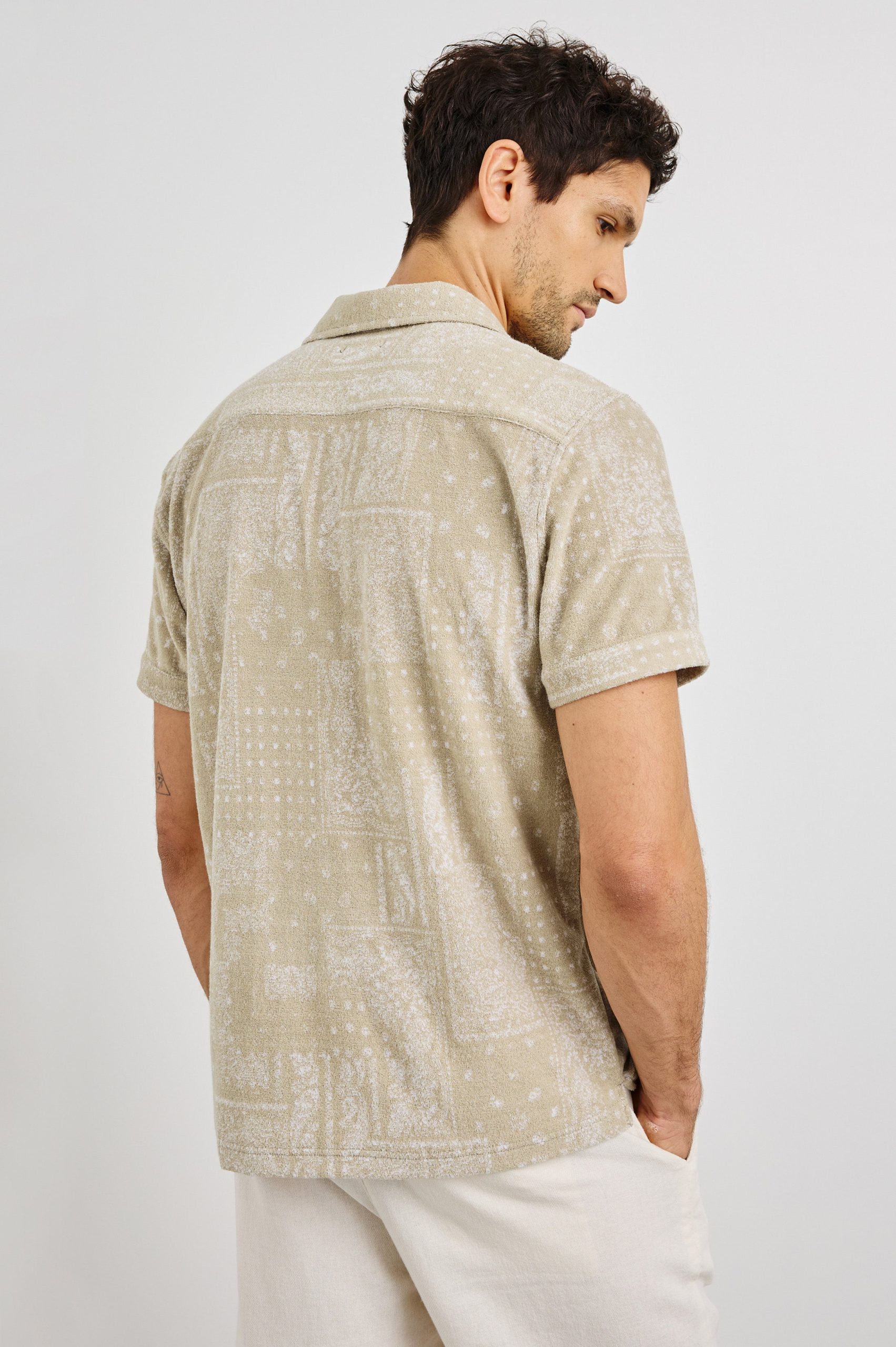 The Maverick Shirt is a classic short-sleeve, with a twist. Crafted from a unique towel terry fabric with a raised jacquard pattern, this button-down makes a statement on its own or paired with the matching Nova Short.