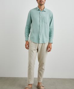 The Mykonos Shirt will take you from day to night with its breathable linen fabrication. The staple shirt features a relaxed collar, long sleeves, and a single patch pocket at chest.