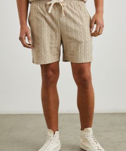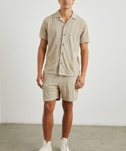 Go poolside all season-long in the Nova short. Made from soft towel terry with a minimalistic jacquard pattern, this one-of-a-kind style features a drawstring tie at the waist and a perfect flattering length. Pair the Nova with the matching Maverick shirt.