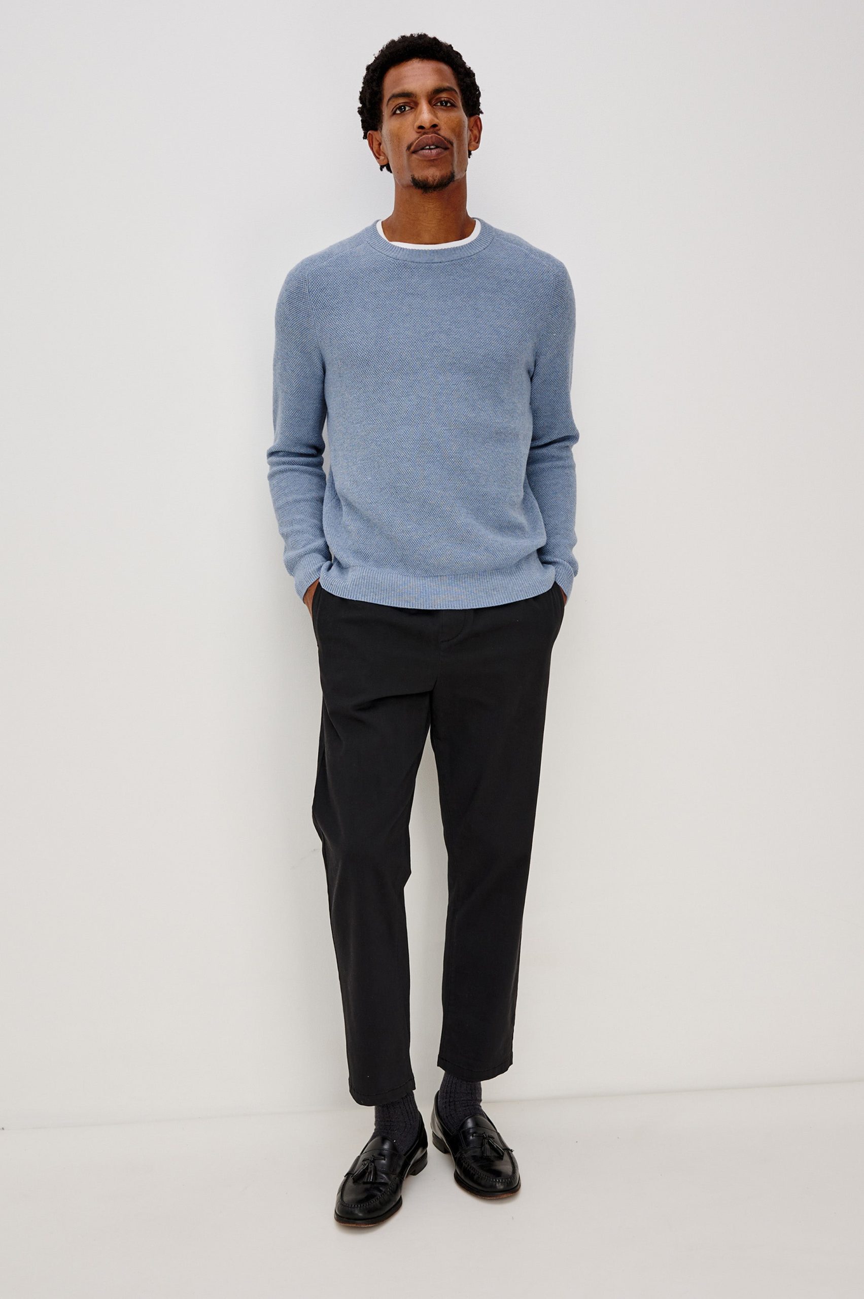 An elevated take on a classic long-sleeve crewneck, the Vann is a cotton-blend, lightweight textured sweater, making it ideal for layering year-round.
