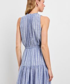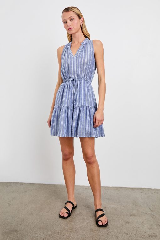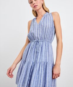 Crafted from soft luxe linen with an adjustable drawstring waist, the Albany is a lightweight mini-dress that emphasizes comfort. It’s finished a ruffled collar and tiered skirt for an extra feminine