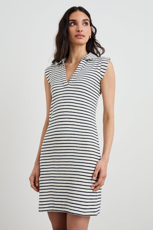 Crafted from a super-soft terry towel lounge with a half placket, wide collar and capped sleeves, the nautical-inspired Amira will make you feel like you’re sunning on the French Riviera, all summer-long.