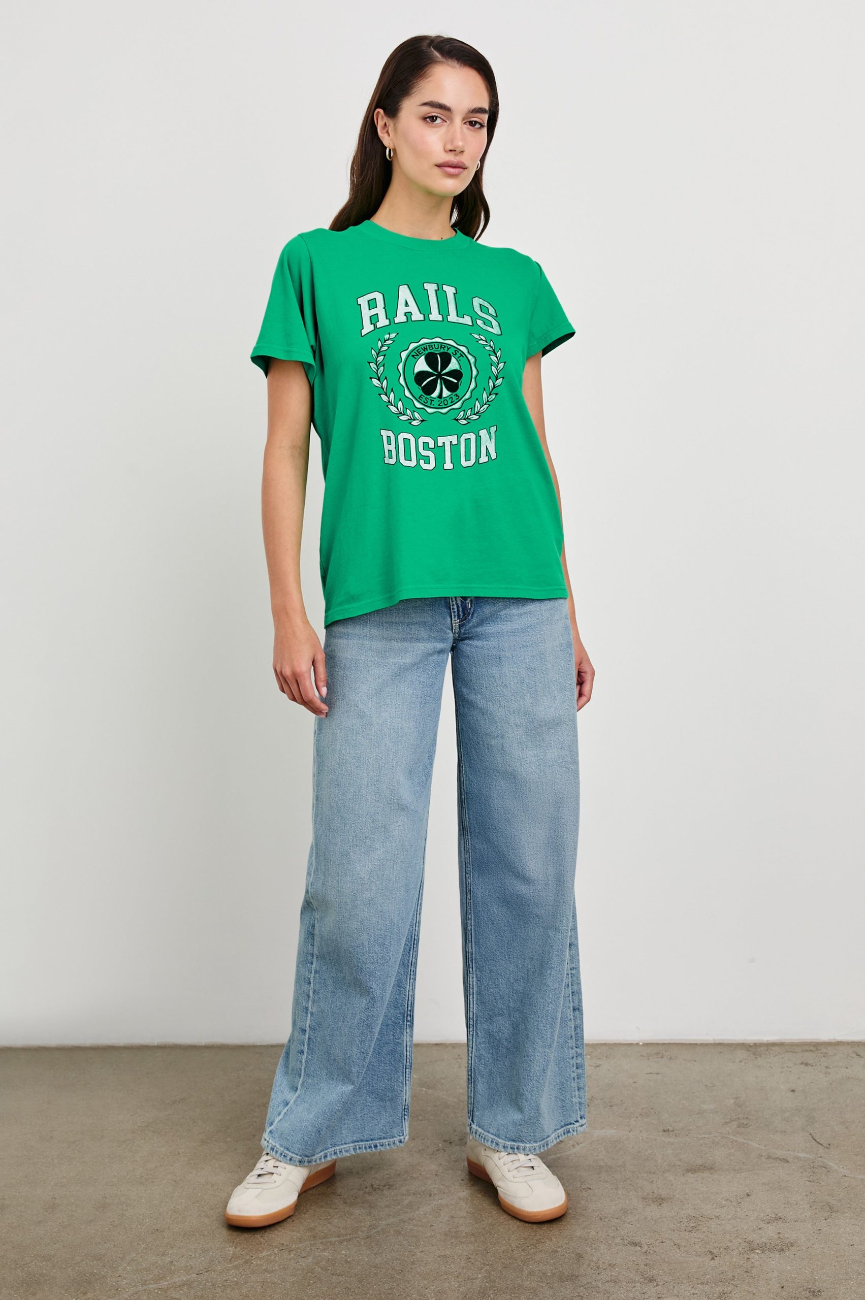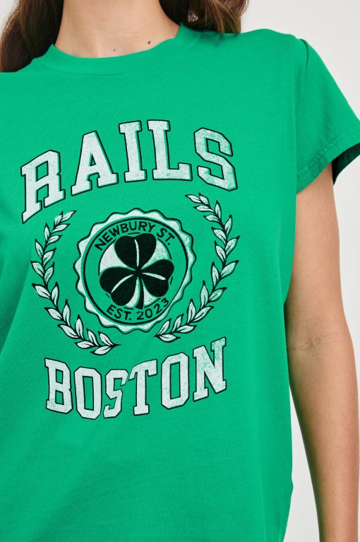 The graphic tee of your dreams. Made from an unbelievably comfortable cotton jersey, this boyfriend-style shirt comes in a green colorway with a Rails Boston print.