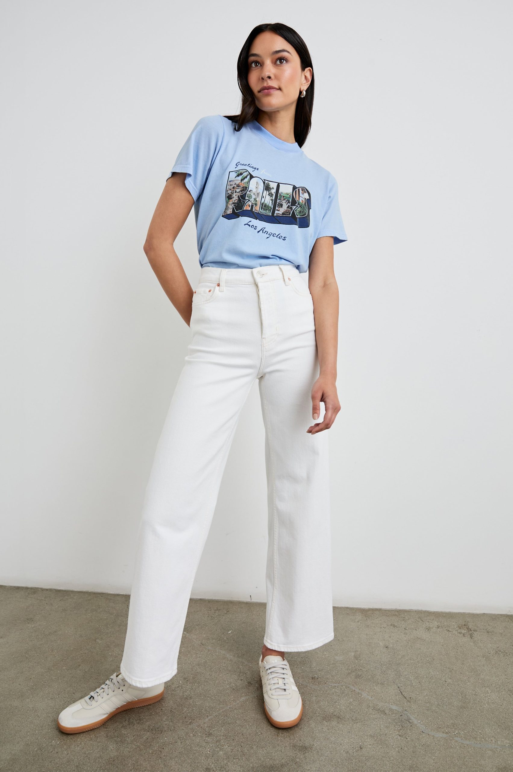 The graphic tee of your dreams. Made from an unbelievably comfortable cotton jersey, this boyfriend-style shirt comes in a blue colorway with a Rails Los Angeles print.