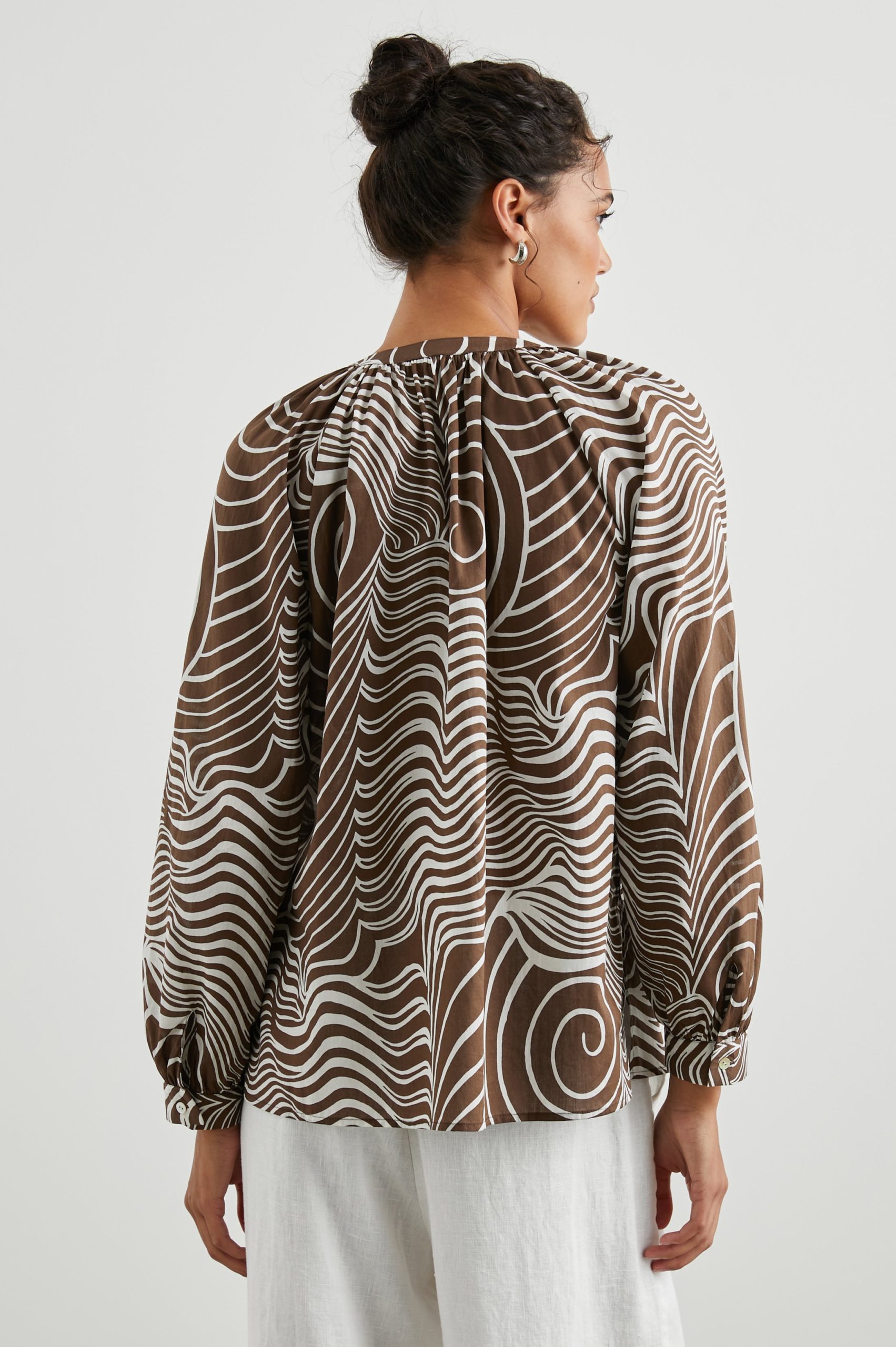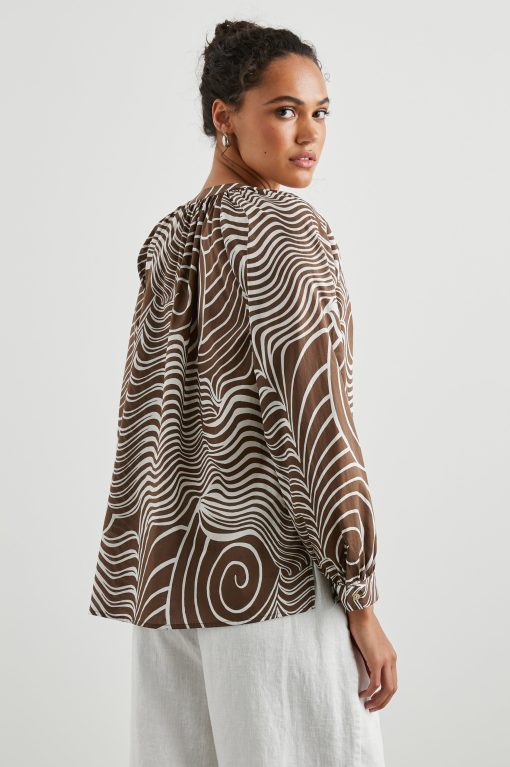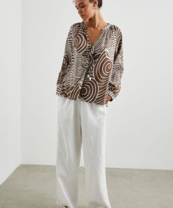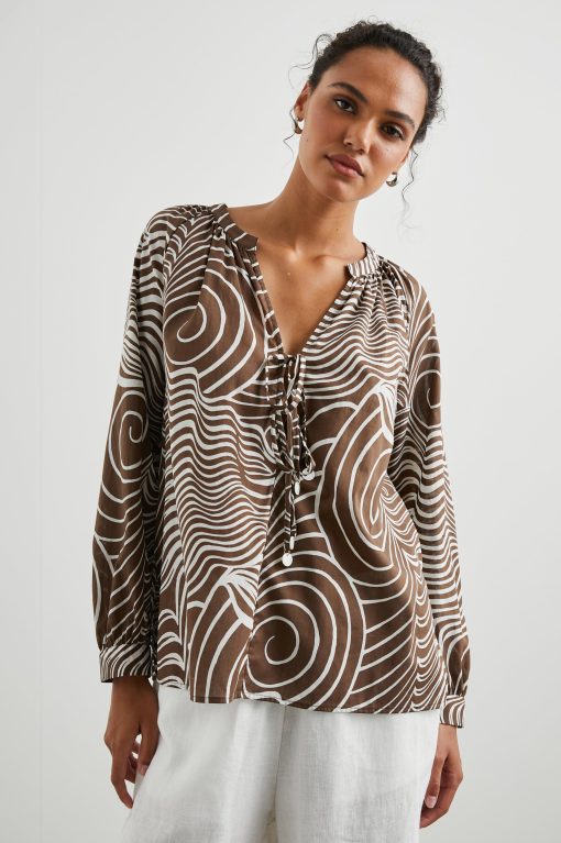 Made from lightweight luxe linen, this top is perfect for warmer days. This long sleeve v-neck top features a raglan sleeve and adjustable ties.