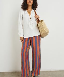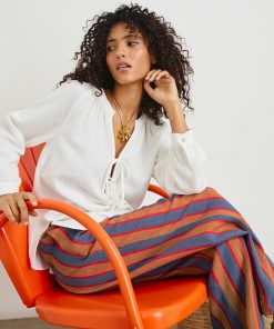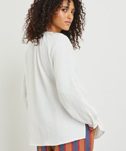 Crafted from luxe linen, the Brielle is an airy style with a mandarin collar, raglan sleeves and front ties. This is a longer top with a roomier silhouette to ensure comfort.