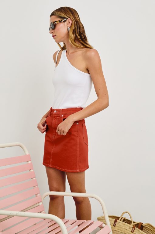 The mini of the moment, the Burbank is a structured A-line skirt with a high-rise, form-fitting silhouette and light stretch fabrication that moves with you.