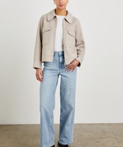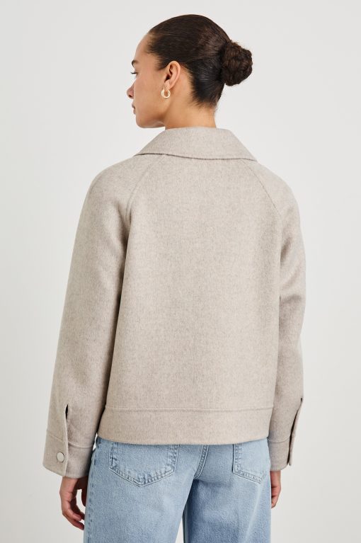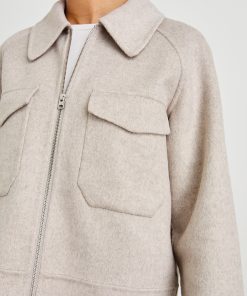 The Cheyenne is a heritage-inspired aviation jacket crafted from a heavyweight wool blend. It is unlined with oversized flap pockets at chest, raglan sleeve and more fitted silhouette.