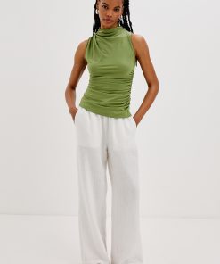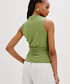 Cut from a supple brushed tissue with a mock neck, slight stretch, and light ruching at the seams, the Christen fits and flatters any figure seamlessly.