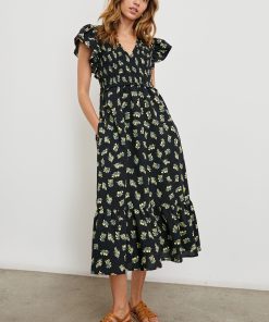 Crafted from crisp cotton poplin, the Clementine is a playful take on the midi sundress with flutter sleeves, a deep v-neckline, and side pockets for convenience. It cinches at the waist with elasticated smocking and flows into an airy, tiered skirt with a scalloped hem.