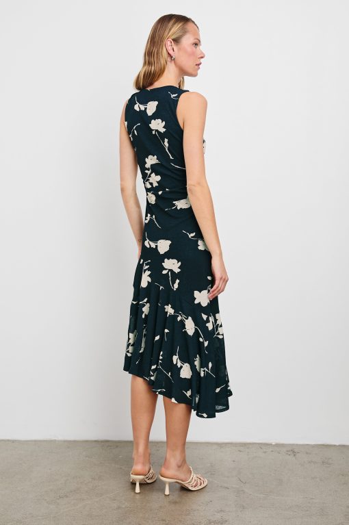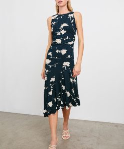 The Daija is a body-contouring dress crafted from compact mesh, designed to flatter year-round. It features elegant draping, a high crew neckline with a single twisted strap, and an asymmetrical hem for a modern finish.