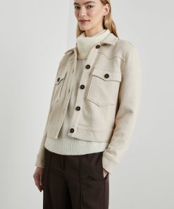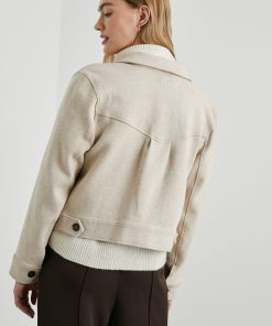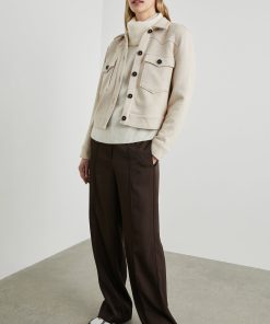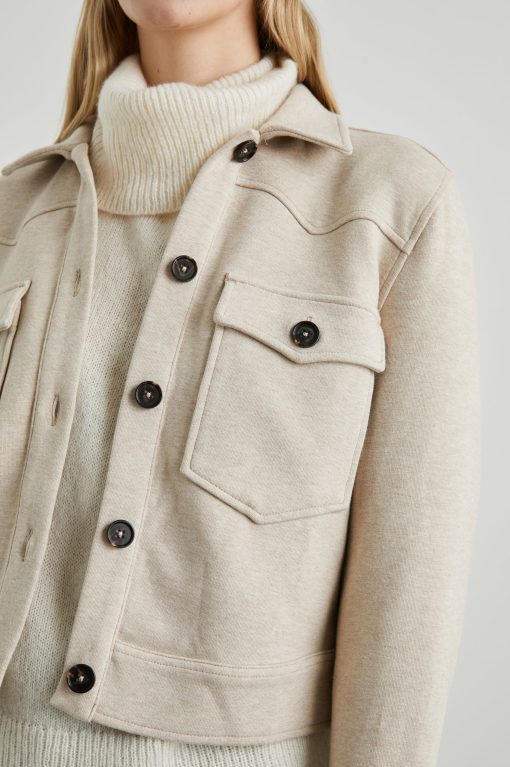 This easy to layer, throw-on-and-go piece will effortlessly take you from day to night in style. Made from heavy knit ponte, this jacket features a button-front closure, western yokes, oversized flap pockets with button closures at chest, and a slightly cropped length.