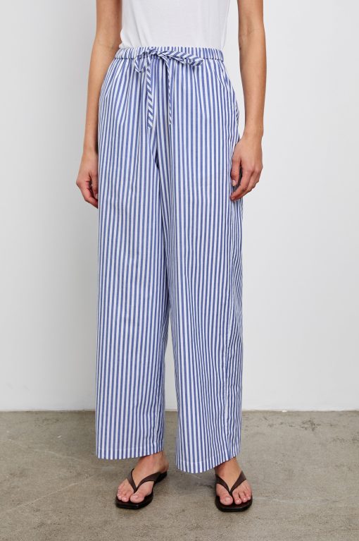 The Emmie is an essential pant that emphasizes comfort. This wide-leg, high-rise style is crafted from a luxe cotton poplin fabrication and features an adjustable drawstring for a customized fit.