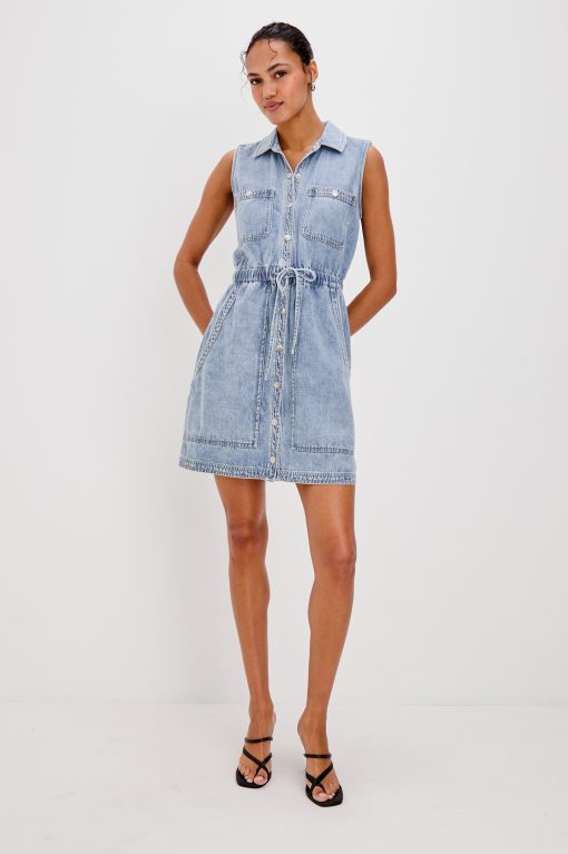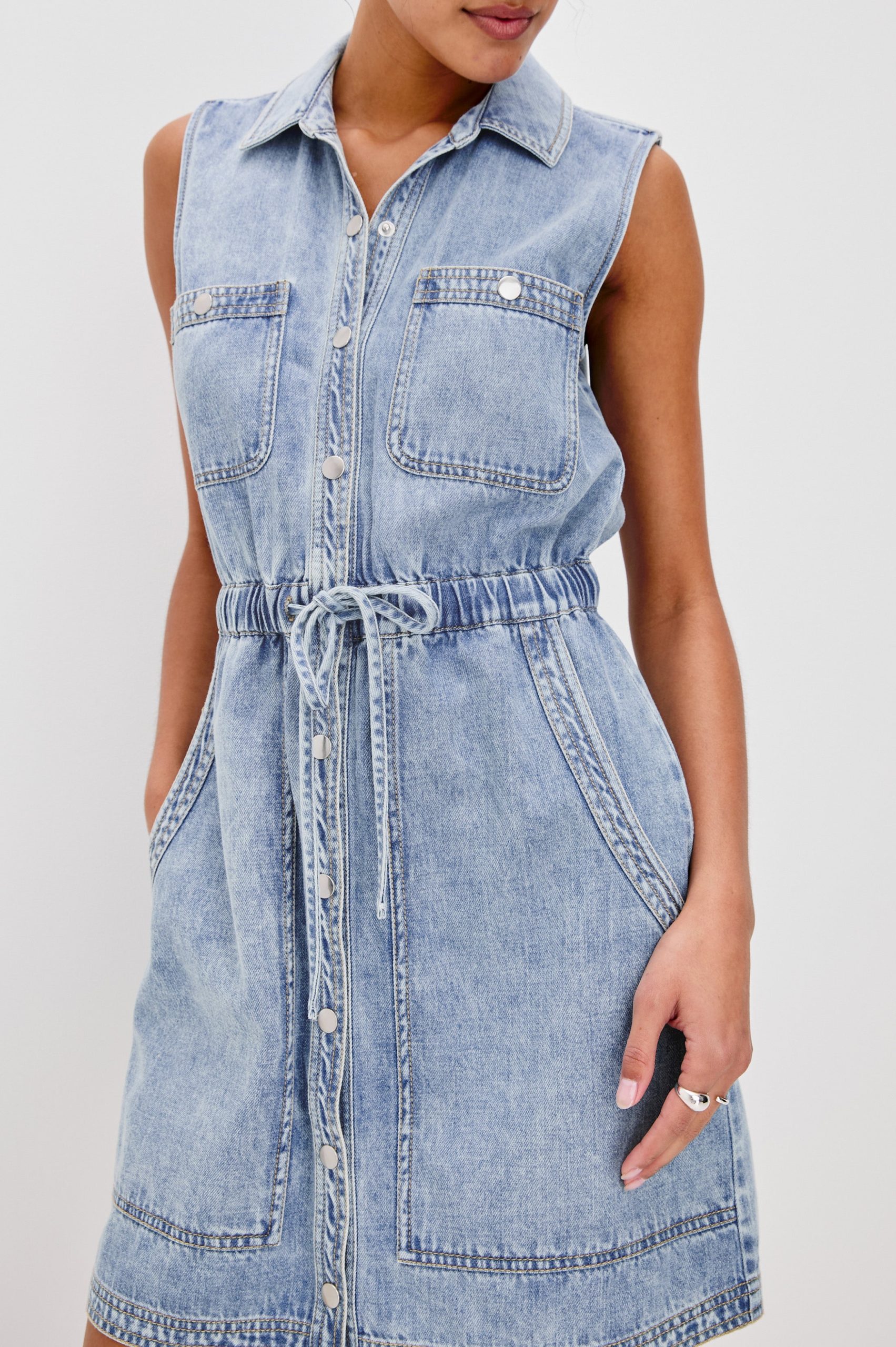Your dream mini dress in denim. Made from a super-soft cotton blend, the Erica features a classic fit with a drawstring waist, snap closures, and roomy pockets.