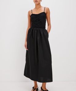 The Fisher midi dress is oh-so easy to wear, featuring a fitted jersey cotton top and cotton poplin skirt. Finishing details include a ruched bodice and pockets at the hip.
