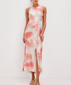 The Gabriella is a slip dress, but better—crafted from a textured satin that skims the silhouette without clinging and falls at a midi length. Flattering finishing touches include a side slit and ruched drawstring.