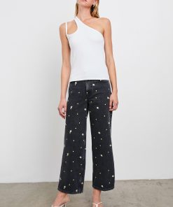 Our best-selling Getty style, just shorter. This jean features the same flattering wide-leg Getty fit, with an ankle-baring 27″ inseam. Fabricated from comfortable, light-stretch denim with daisy embroidery, this style is a year-round staple.