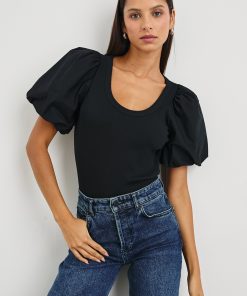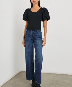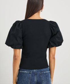 A t-shirt with a twist, the Hallie brings the drama with billowing crochet sleeves and a deep v-neckline. Cut from lightweight cotton blend with a pointelle stripe stitch, step out in this and expect all eyes on you.