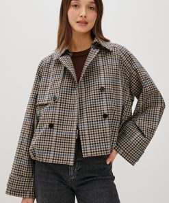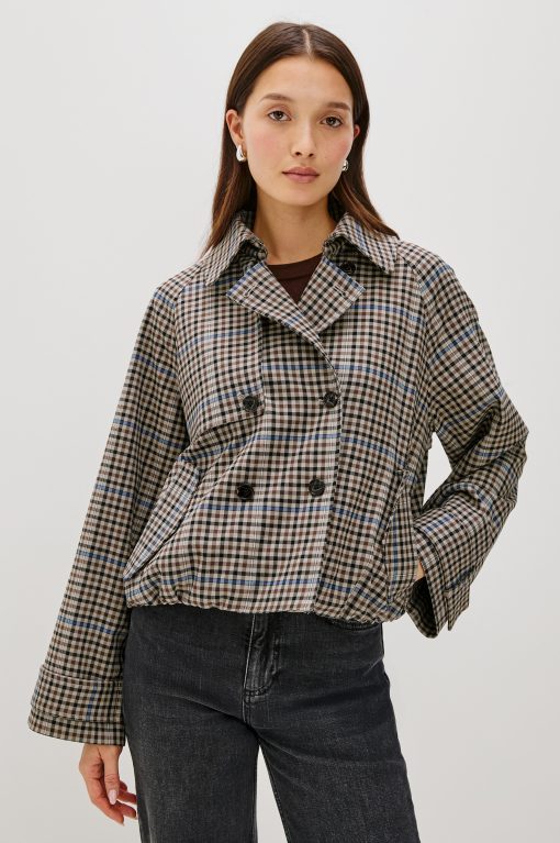 Not your average trench. The Jett is a cropped khaki jacket with a bubble hem, functional pockets, and cuffed sleeves with adjustable snaps to customize the fit.