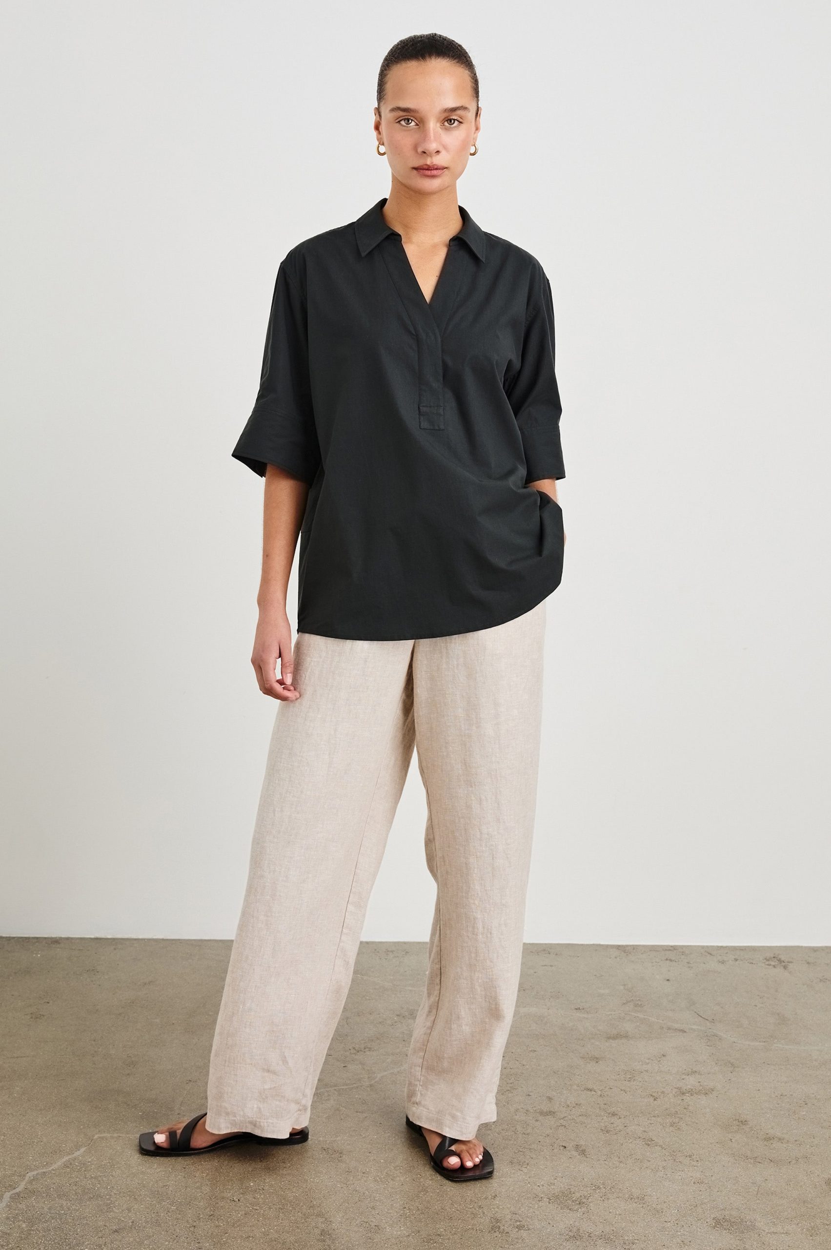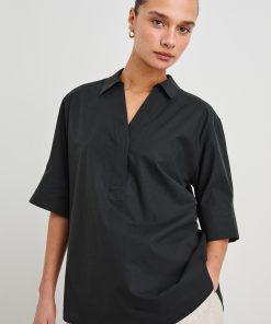 Crafted from airy cotton poplin, the Juda is a shirt specifically designed to keep you comfortable. With a roomy fit, v-neckline and collar, this is an essential lightweight pullover.
