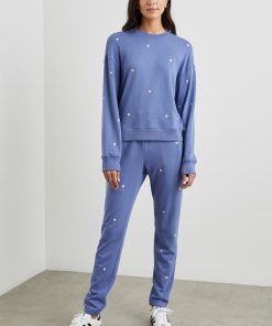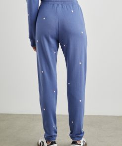 Super soft, lounge terry, high rise sweatpants featuring pink embroidered hearts throughout, elastic waist with natural drawcord, side pockets, tapered leg, and elastic cuffs. This fashion-forward jogger style is perfect for relaxing at home or going about your day in the most comfortable fashion.