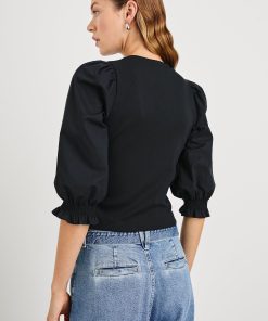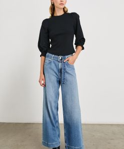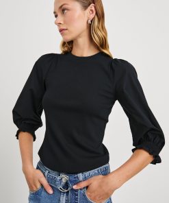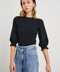 Bring the drama in the Landyn, the heavier-weight rib top that serves as both a sweater and t-shirt. Featuring a classic crew neckline and balloon sleeves cinched with ruching at the cuffs, this is a more refined, feminine alternative to your go-to athleisure.