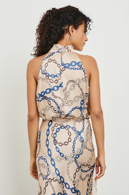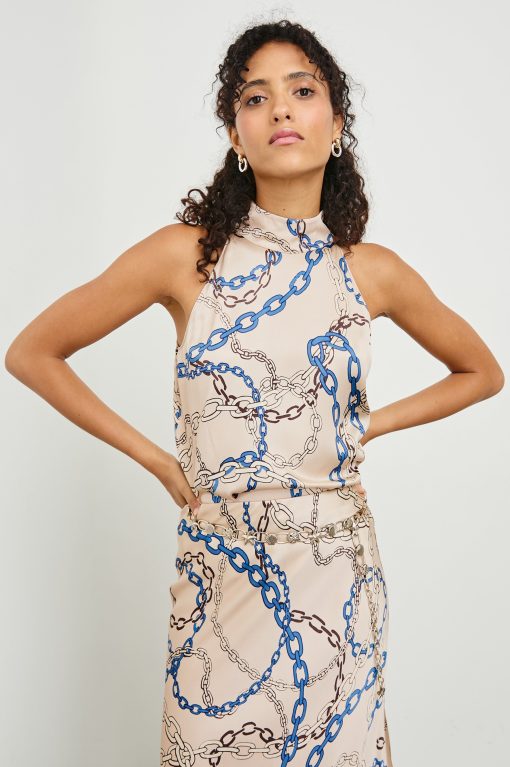 The Leah is a timelessly sophisticated halter top cut from luxe satin crepe. Descending from a high-neck secured with a button closure, the Leah has a fluid fit that emulates a babydoll fit.