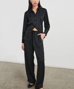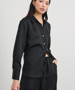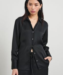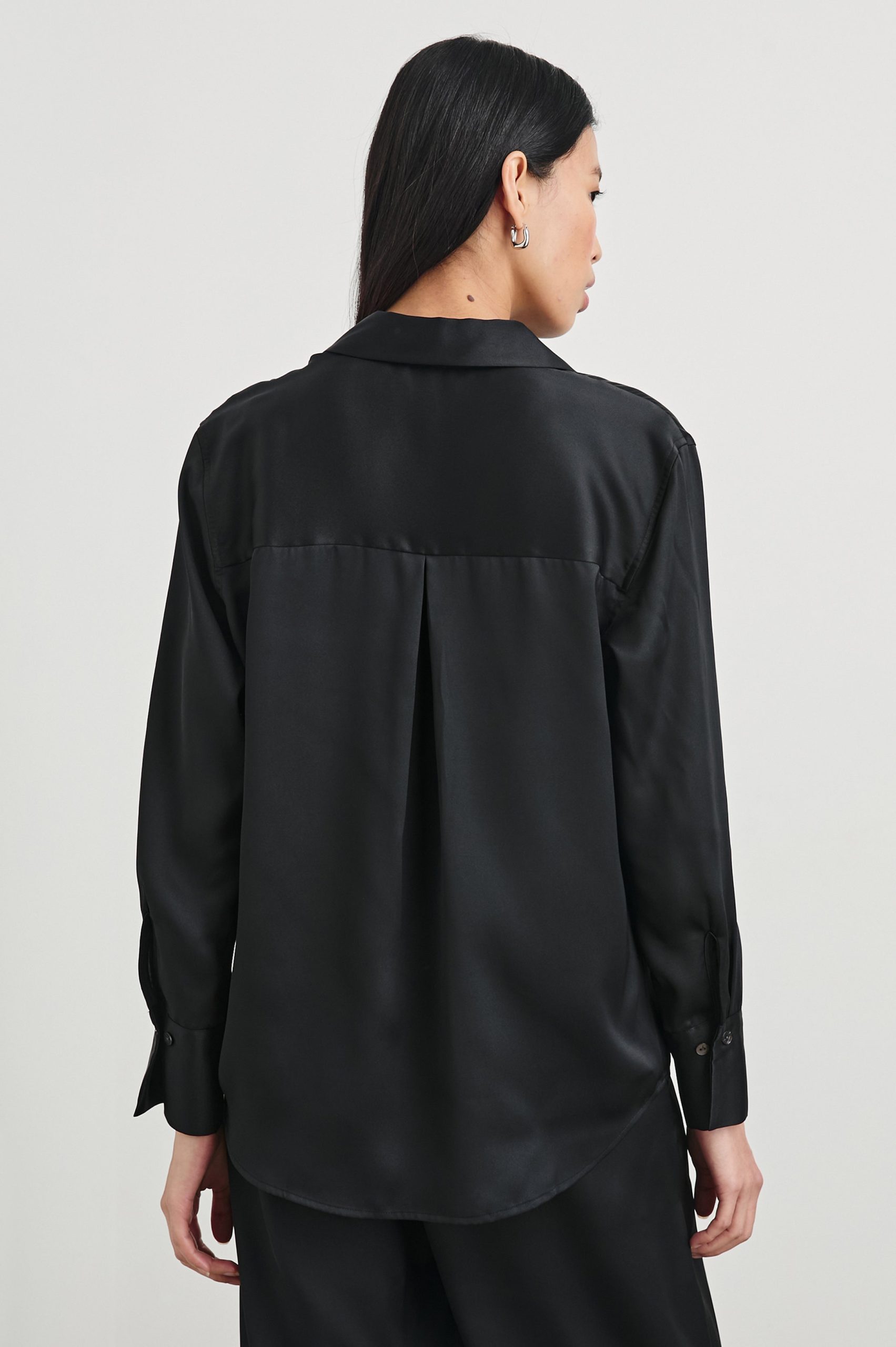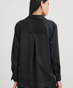 Crafted in shiny twill, this soft and sleek button-down features a relaxed body for everyday wear. Tuck in, layer over a tank, or pair with the Damani Pant for an instant outfit.
