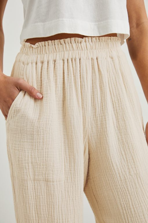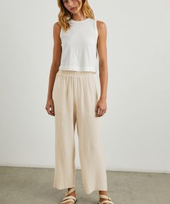 Your favorite Leon pants but cropped to keep you warm weather ready. Made from super soft and breezy double gauze cotton, an easy wide-leg silhouette and smocked waistband let you eat, drink, work and play in optimum comfort.