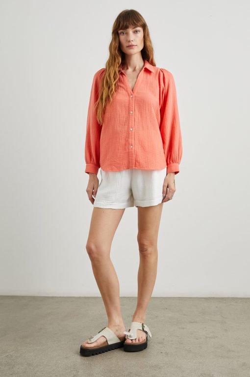 This buttondown style pairs well with sunshine. Made from heavy double gauze, it’s breezy yet durable. Wear it with trousers and wedges for special occasions, or shorts and sandals for casual outings.