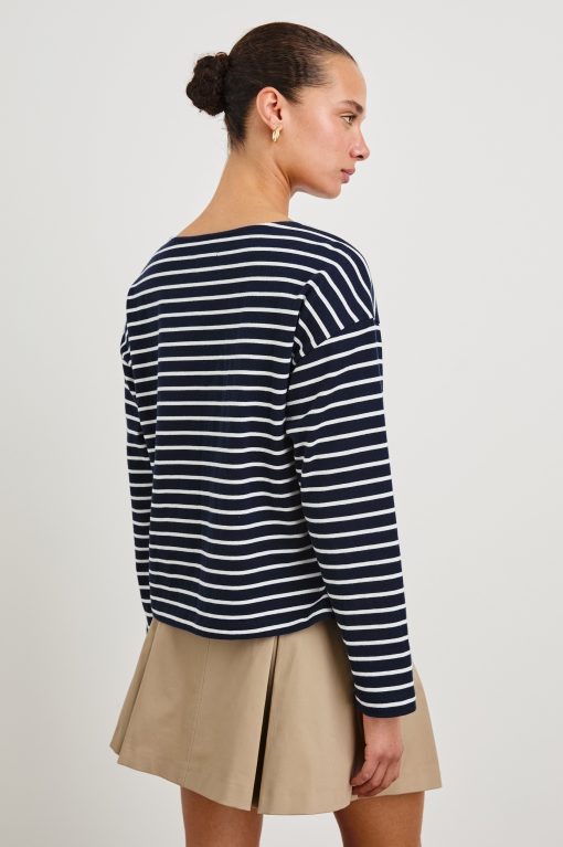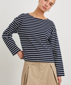 The Macy is a 100% cotton jersey long-sleeve that effortlessly adapts to any season. With a boat neckline, relaxed fit, and flared sleeve, it is lightweight and breathable.