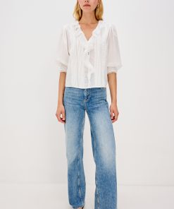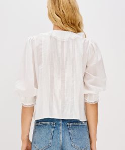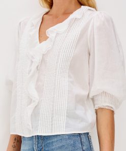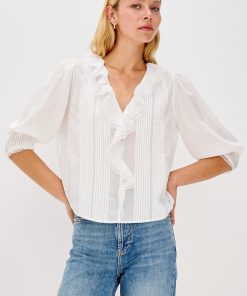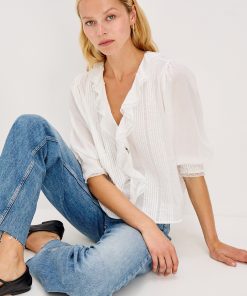 The Mare is a classic blouse with cascading ruffle detailing down the front. Designed in soft beach cotton with a relaxed fit, it’s finished with delicate lace trim at the neckline and cuffs for a feminine touch.