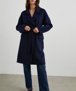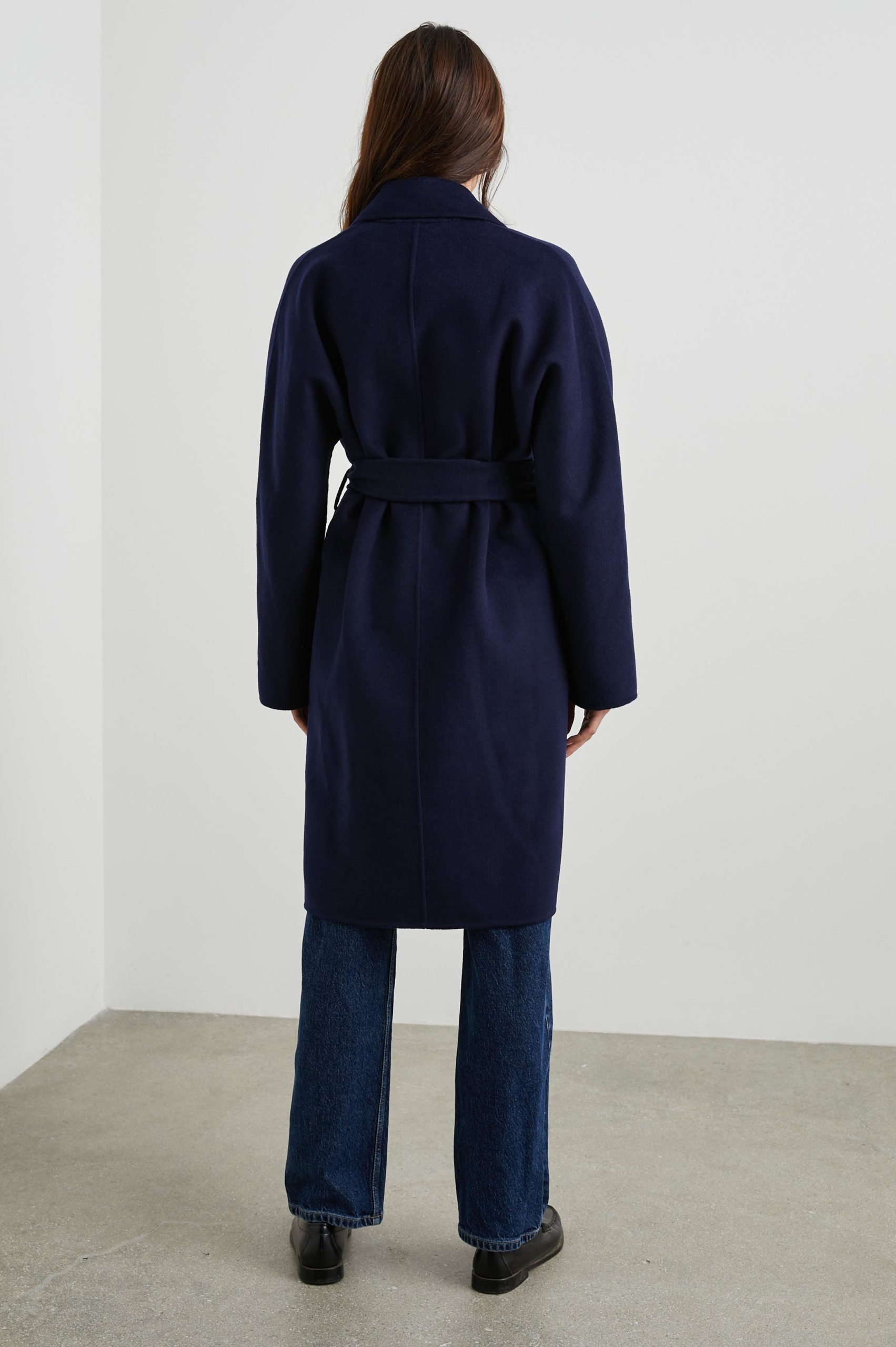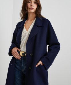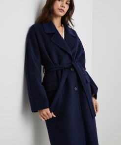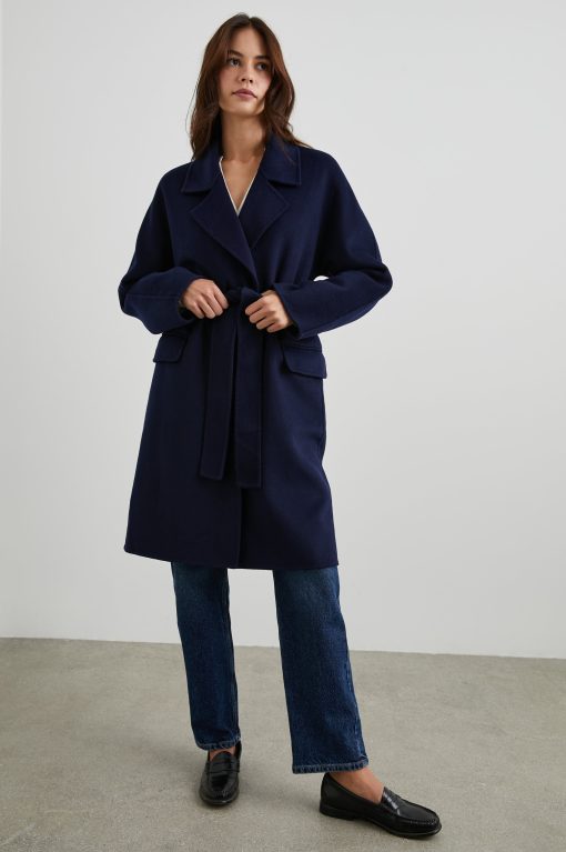 This luxe coat is the perfect third piece sure to elevate any outfit. Made from a heavyweight wool blend, this unlined coat features a slightly oversized fit, an adjustable belt, notched lapels, two flap pockets at hip, and four horn buttons.