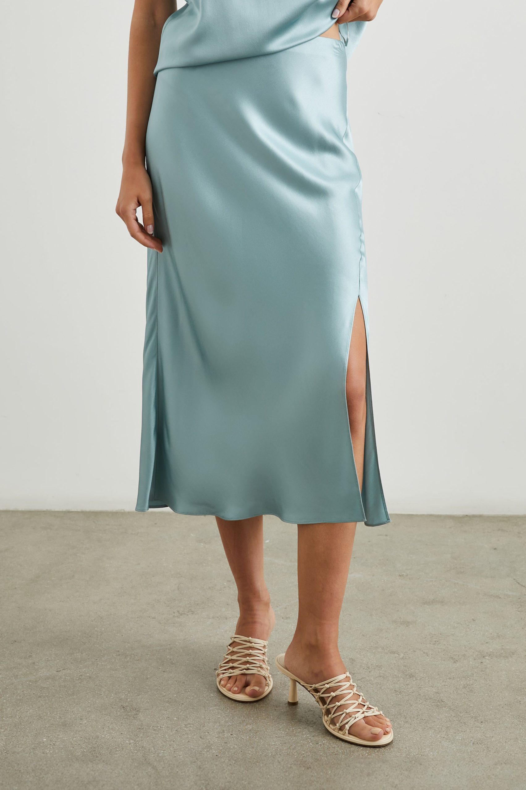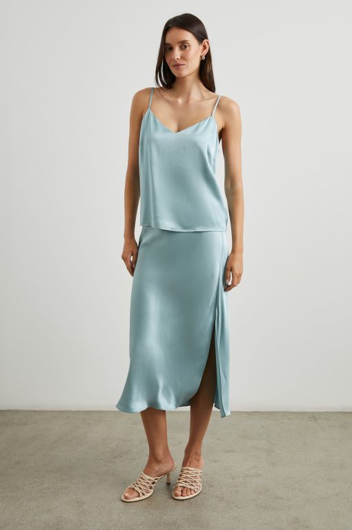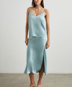 The Maya Skirt is perfectly proportioned with a slip silhouette and midi length that feels both comfortable and chic. Taking a minimalist approach, the front-facing side slit and elegant blue color both make a subtle statement. Best of all, it’s done in a smooth, satin back crepe that looks as luxe as it feels.