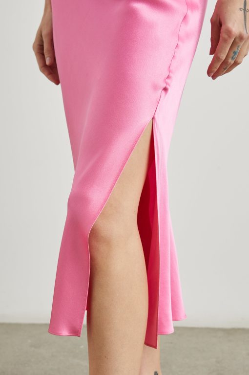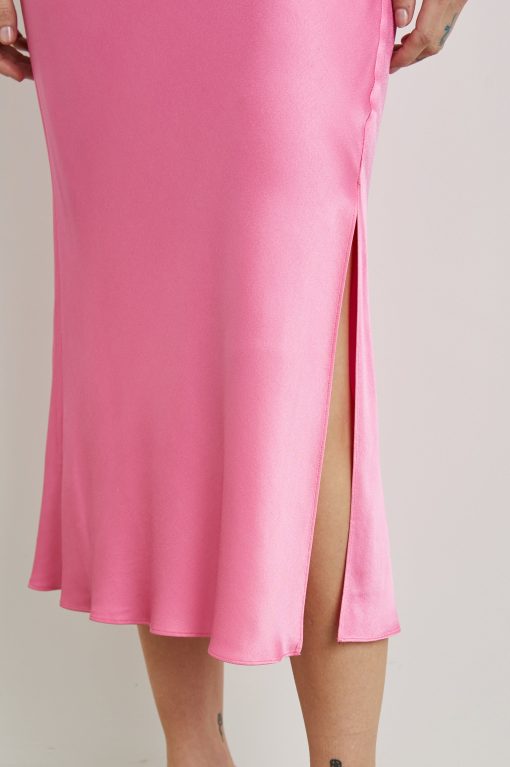 The Maya Skirt is perfectly proportioned with a slip silhouette and midi length that feels both comfortable and chic. Taking a minimalist approach, the front-facing side slit and malibu pink color both make a subtle statement. Best of all, it’s done in a smooth, satin back crepe that looks as luxe as it feels.