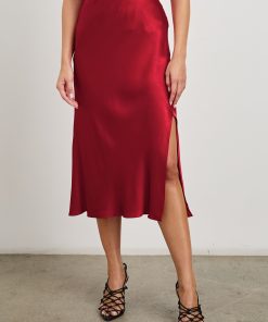 The Maya Skirt is perfectly proportioned with a slip silhouette and midi length that feels both comfortable and chic. Taking a minimalist approach, the front-facing side slit and scarlet color both make a subtle statement. Best of all, it’s done in a smooth, satin back crepe that looks as luxe as it feels.