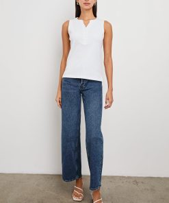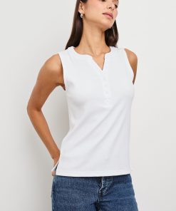 The classic henley, subtract the sleeves. Mayla is a fresh take on the tank with wide shoulder straps, a crew neck, and a longer button-up placket. Featuring a stretch cotton fabrication for a more body-contouring fit, it’s designed to both layer and wear alone.