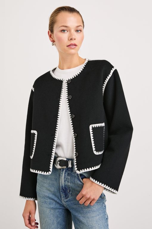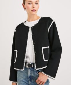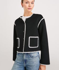 With white contrast stitching at the seams, black buttons, and a boxy fit, this heavy wool sweater is as stylish as it is cozy. Pair with jeans or your favorite midi or mini, and you’ll be ready for any event on your fall-winter itinerary.