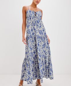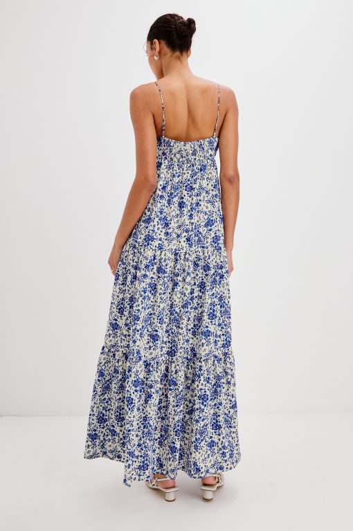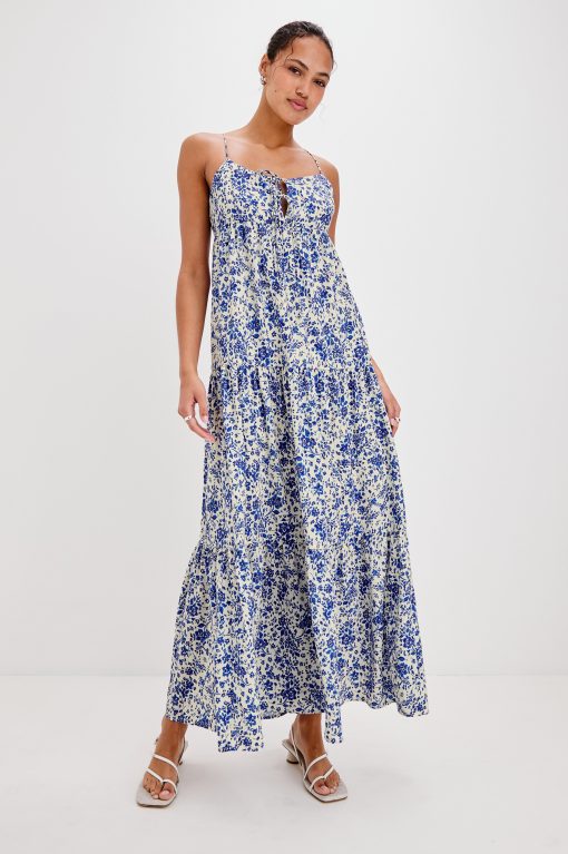 Made from 100% crinkled cotton poplin, the Mica is an easy-wearing maxi dress with a fitted bodice and full, flowy skirt. Features full lining and adjustable straps.