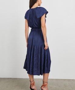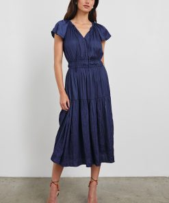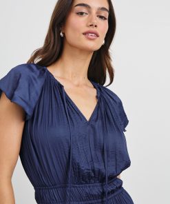 Crafted from a sumptuous crinkle satin, the Mirielle dress features a free-flowing fit with a shirred waist, neckties, and flutter sleeves.