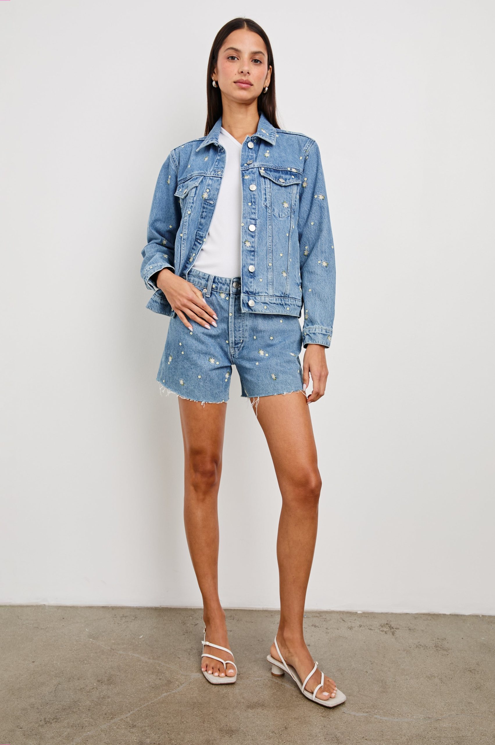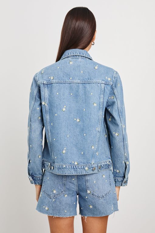 The classic trucker jacket, the Mulholland has a vintage-inspired silhouette finished with delicate daisy embroidery. It features a traditional fit, so size up for layering purposes or a boyfriend look.