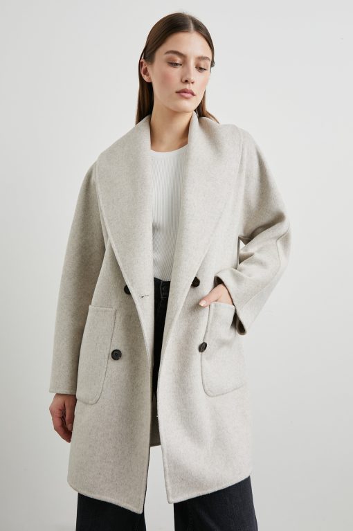 Your classic outerwear gets an upgrade with the Nily, the heavy wool blend, double-breasted coat that’s bound to be your new go-to. With two statement patch pockets and a knee-length fit, this is your layering piece for the season.