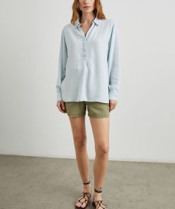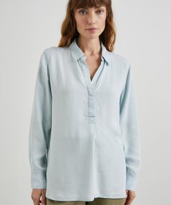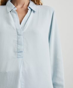 The Nissa Top looks as elegant with a pair of jeans as it does with a satin skirt. Done in a light vintage wash, the pullover top is designed in sustainably sourced Tencel™ with a concealed half placket, curved shirttail, and split side seams.