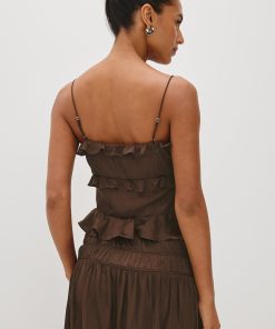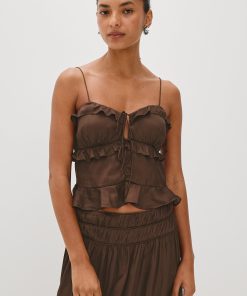 Crafted from silky crinkle satin, the Ortona Top has tiered ruffles and dainty tie closures. A side zipper and adjustable straps ensure the perfect fit.