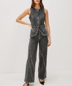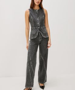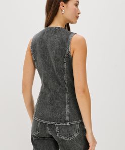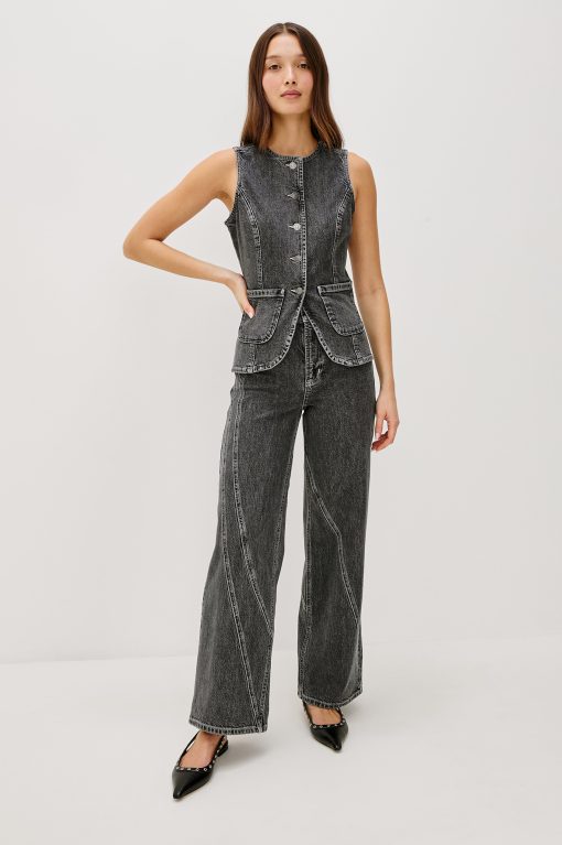 A dreamy denim vest with light stretch, the Portola features a collarless neckline, an ultra-flattering fitted silhouette, and front patch pockets.